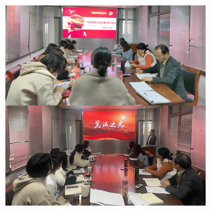 在第十个国家宪法日来临之际,为进一步宣传宪法等法律法规,增强教师法治意识,11月29日,英国365集团官网在公司会议室召开依法治校专题学习暨教职工政治理论学习会议。会议由公司党总支书记、副经理刘影主持,全体教职工参加。