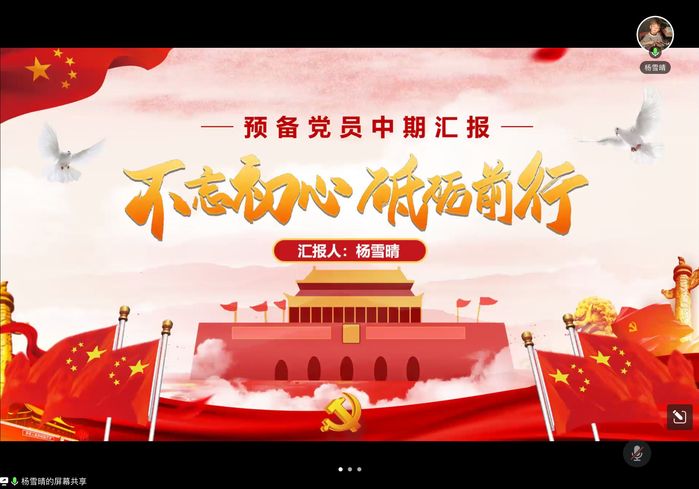 会上,支部书记陶善珺带领与会同志学习了《公司党总支员工党支部预备党员中期考核制度》,介绍16名预备党员半年来的教育培养情况。随后,16名预备党员分别从政治素质、理论学习、作用发挥等方面,详细阐述自己在考察期间的学习、生活情况,并深入剖析自己的不足与改进之处。在半年的考察培养中,他们认真参加党史学习教育,学习党的理论,按时交纳党费,积极参加党支部活动,有效开展“一对一”帮扶活动。尤其在疫情防控期间,他们能带头遵守校园防疫规定,参与数次志愿服务,起到了很好的带头模范作用。