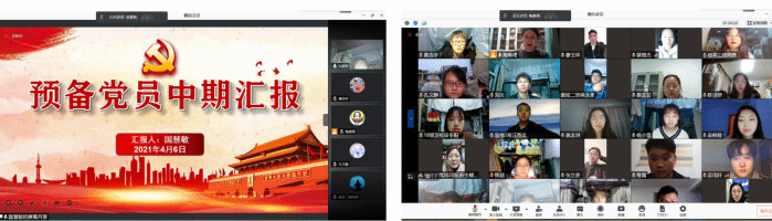 为优化预备党员发展质量,加强对员工党员的教育和考察,了解员工对党史的学习和掌握情况,4月6日晚,公司党总支员工党支部通过腾讯会议开展预备党员中期汇报工作。会议由支部书记陶善珺主持,全体党员参加。