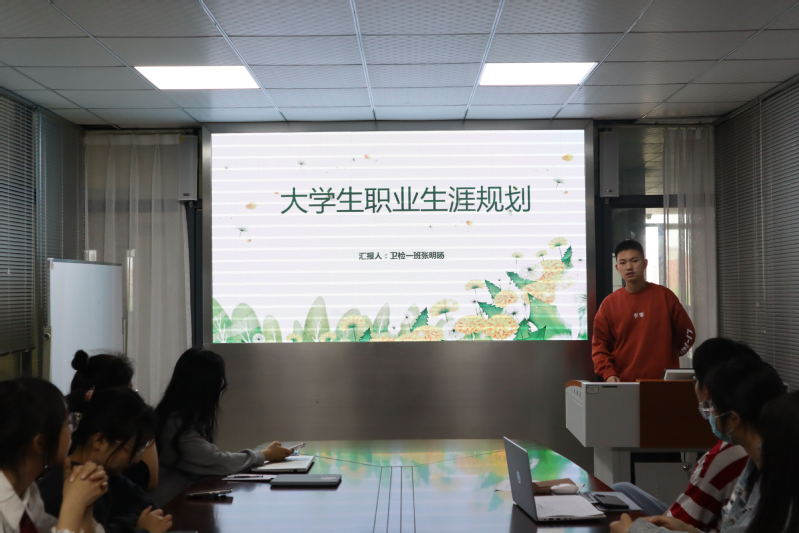 比赛前,曹玉祥介绍了大赛规则与流程。随后,参赛选手依次上场,分别从自我认识、环境分析、职业路线的规划、目标的确定和实施四个方面进行ppt展示与汇报。问答环节中,选手们思路清楚、观点鲜明、论据有力,充分展现了思维、组织和表达等能力水平。最后,崔晓霞对每位选手不同的职业规划方向和规划的可行性进行点评,指出每组同学当前存在的问题,并对本次参赛选手展现出的职业目标明确、路径规划清晰、角色代入感强表示赞扬。