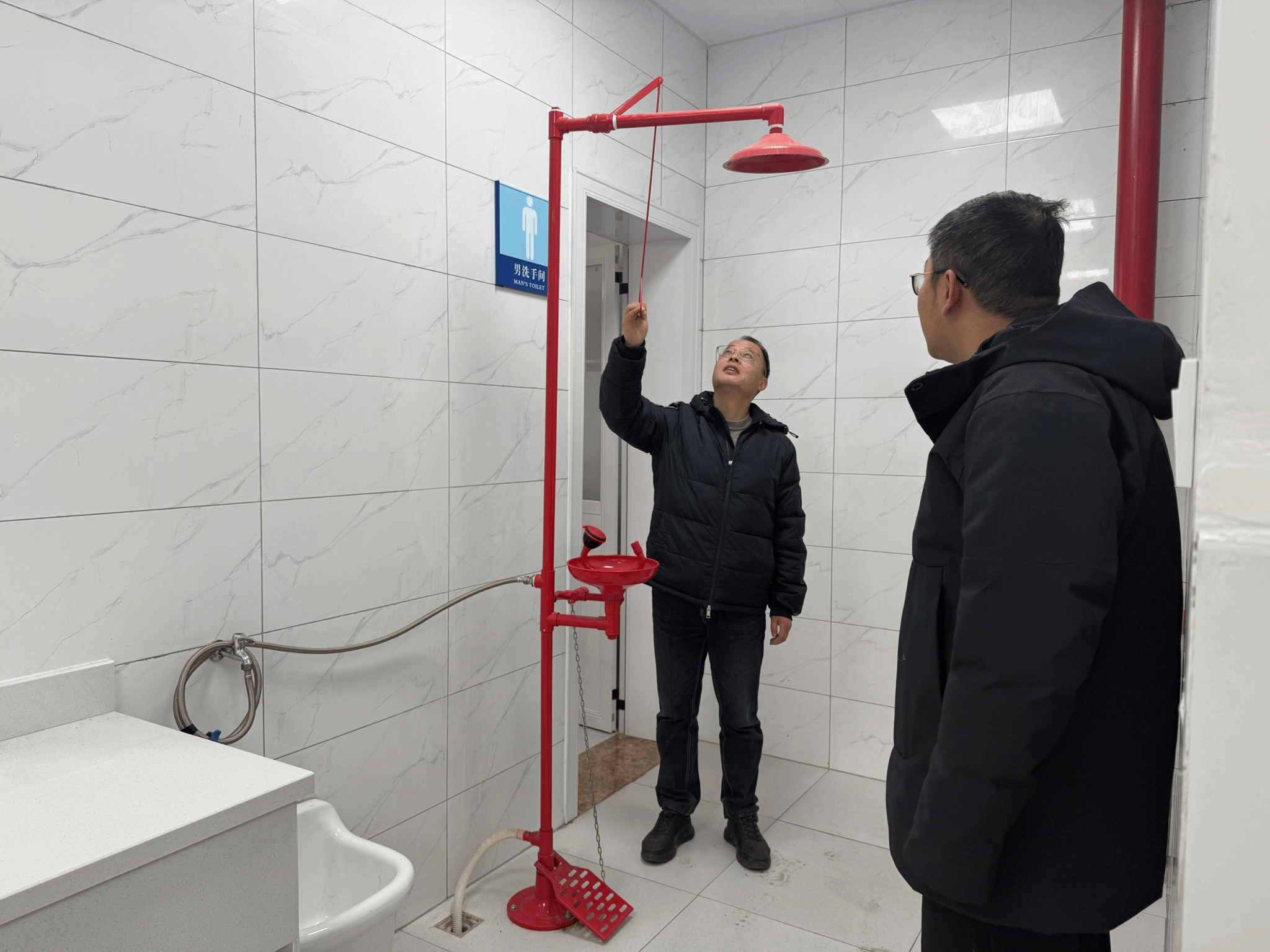 会后,公司领导分别带队开展了实验室安全检查和员工宿舍拉网式隐患排查,详细了解了实验室安全制度及责任落实情况、安全设施配置及使用情况、危险化学品管理情况等;重点检查了员工宿舍的用电线路、电器设备以及消防设施,对发现的安全隐患进行了详细记录,并要求相关宿舍立即整改,确保公司安全稳定。(鹿青/文  高羽、曹玉祥/摄)