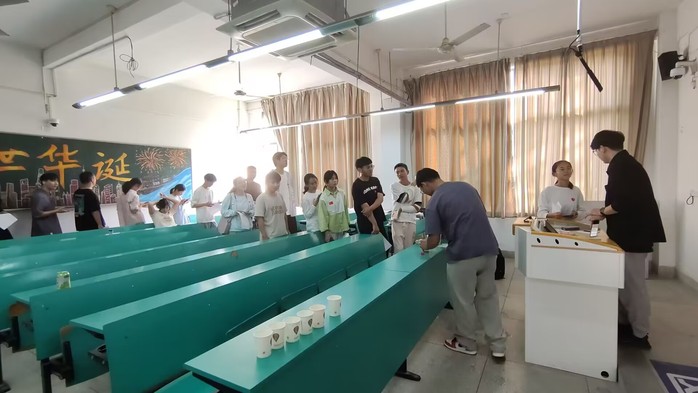在2号教学楼2108教室,开展了集技巧与知识为一体的趣味小游戏——趣味乒乓。同学们信心满满,不断挑战着自我,将乒乓球从一个接着一个装满水的杯子吹出去,不仅考验了同学们的力量等方面的技巧,同时也对同学们的耐心有着很大的考验;同时也播放关于我国外交的一些小视频,同学们认真观看相关视频后,负责人对此进行提问,不仅让同学们参与了一次时光穿梭,增长了自己的见识,还认识到了被誉为“小球推动大球”的“乒乓外交”所包含的积极意义。