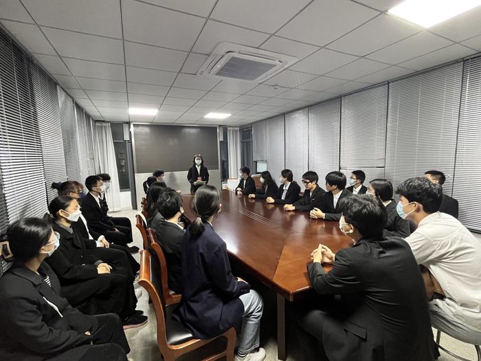 会议在雄壮激昂的《光荣啊,中国共青团》中圆满结束。会后,学代表在四号实验楼三楼公司会议室就员工的在校生活、学习等召开学代表讨论会。