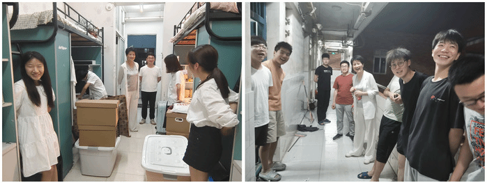 临行前夜,慰问关怀。6月14日晚上,为确保员工安全稳定离校下点,崔晓霞与公司教学秘书何康、2019级辅导员曹玉祥走访所有下点员工宿舍。崔晓霞慰问了每一位在寝员工,叮嘱大家临行前收拾好个人物品,同学室友之间好好告个别,为第二天出发做好充足准备。