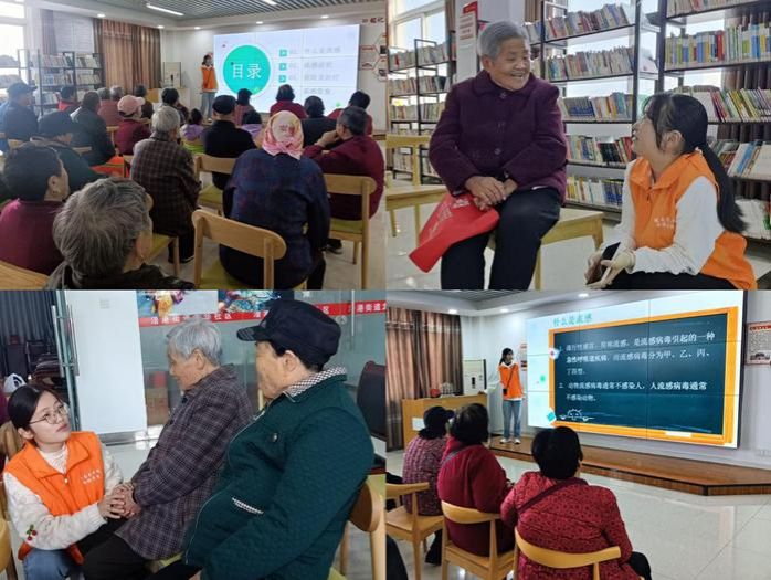 预防甲流,守护健康。为响应“健康中国战略”,提高百姓疾病防范意识,普及基础医疗健康知识,志愿者们于龙华社区开展了预防流感宣讲活动。通过与老人聊天话家常,志愿者们了解老人身体情况及生活习惯,大家从实际情况入手,结合具体例子,为老人们详细讲解流感的预防方法和流感期间的饮食,并带领老人一起学习七步洗手法。老人们也积极响应,与志愿者现场互动,现场其乐融融。通过预防流感宣讲活动,老人们进一步了解流感相关知识,不仅树立了健康安全意识,而且增强了自我防护能力。