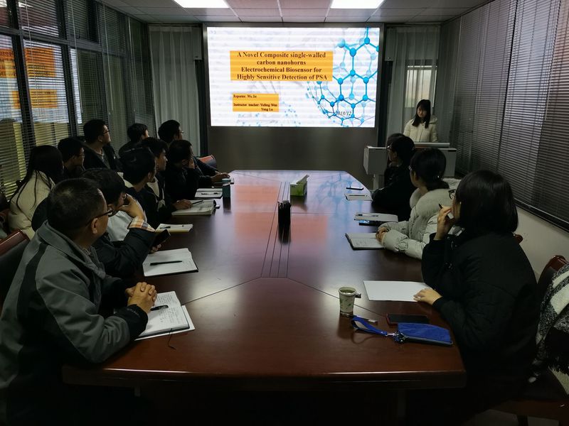 汇报中,2016级医学检验技术专业和巫杰2017级卫生检验与检疫专业徐娇阳分别就“一种新型复合碳纳米角电化员工物传感器用于PSA的高灵敏检测”和“基于DNA条形码技术的粉螨种类鉴定研究”进行了汇报。两位同学从研究背景、方法、结果和结论和讨论等方面进行了阐述,汇报过程中英文流畅、口齿清楚,节奏恰当,PPT内容丰富,图文并茂。