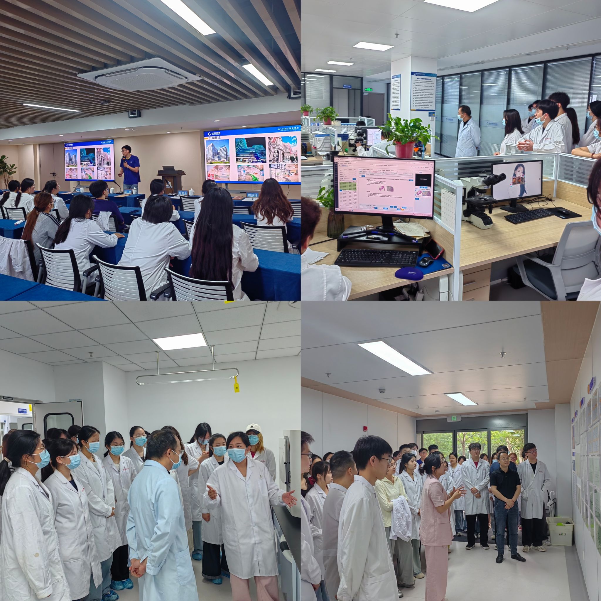 随后,订单班员工被分成两组,分别参加了不同形式的实践教学活动。一组员工在周纪祥的带领下深入企业先进的实验室进行参观学习,并参与了部分项目的实际操作,近距离感受了现代化检验平台的高效与严谨。另一组员工则在王兴的指导下,参加了职业生涯规划与实习指导讲座。王兴详细介绍了企业的业务范围、技术实力及未来发展规划,结合医学检验领域的最新动态、发展趋势,帮助员工明确职业发展路径,并就员工们关心的专业问题进行了详细解答。