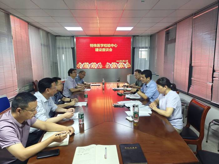 6月21日下午,公司党委常委、纪委书记、监察专员王保中赴英国365集团官网专题调研特殊医学检验中心建设工作,公司党委书记刘影,经理洪亮,专家委员会成员参加座谈会,会议由刘影主持。
