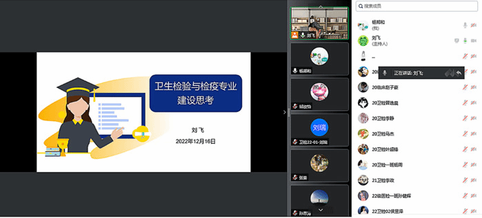刘飞博士以“卫生检验与检疫专业建设思考”为题作学术报告。他以卫生检验与检疫专业人才培养方案为例,介绍了卫生检验与检疫专业的概况,详细解读了《普通高等公司本科专业类教学质量国家标准》中有关本专业的相关条款,以及据此修订人才培养方案过程中的思考,探讨了专业实验室的建设思路与方案选择,并对近些年的人才培养现状分享了自己的观点。最后,对卫生检验与检疫专业的未来进行展望,并提出专业发展能否突破的关键点供大家讨论。整场报告思路清晰,精彩生动。