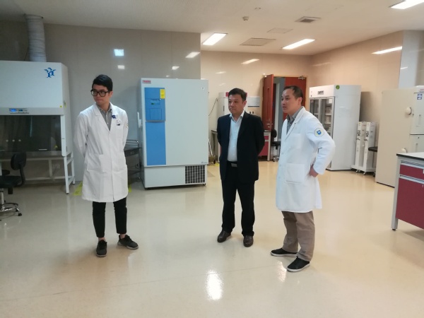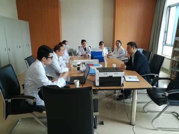 浦春一行在对方的陪同下首先考察了医院检验科,随后与医院和科室负责人进行了座谈,医院检验科刘志伟主任对公司一行的到来表示热烈欢迎,随后介绍了医院概况、检验科规模、硬件建设、团队力量和教学科研等情况,并表达了与公司加强合作的意愿。下沙院区主管吴胜军就医院目前的实习生带教、教学管理及员工住宿等情况也进行了具体介绍。浦春对邵逸夫医院领导的周密安排表示感谢,他向医院领导介绍了公司概况、实习基地建设的整体思路。会上,双方就实习时间和科室安排、毕业论文写作、员工住宿等情况进行了详细交流。
