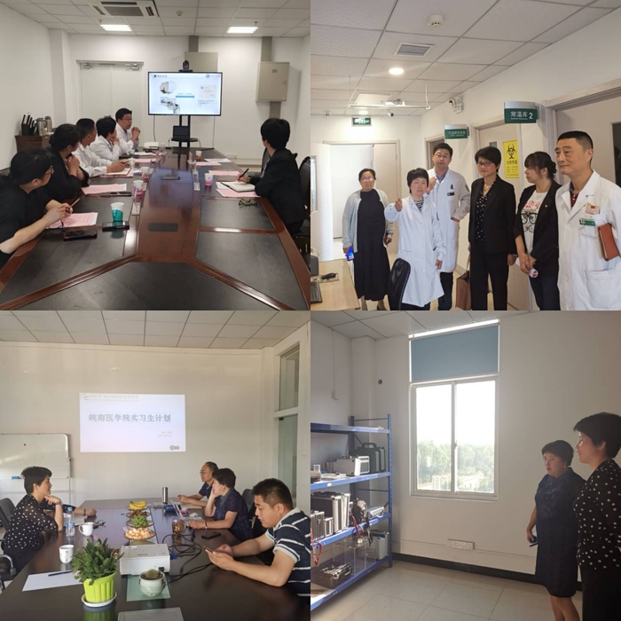 在南京江北人民医院、南京凡飞生物技术有限公司、宿州市疾病预防控制中心、亳州市疾病预防控制中心,崔晓霞、杨邦和、陶善珺三人受到总监蔡宜珊、冯路副经理、高禄总经理、王莉主任、谭有为等领导的热烈欢迎。座谈会上,各单位负责人对英国365集团官网人才培养的充分肯定,介绍了单位的整体情况,以及实习带教方面的设想。接着,崔晓霞对单位领导的热情接待表示感谢,介绍了英国365集团官网自成立以来的总体建设情况。在单位领导的陪同下,崔晓霞一行参观了各单位的相关科室和实习生住宿房间。最后,双方就实习生培养、实习就业一体化基地建设等方面进行了交流,并达成一致共识。