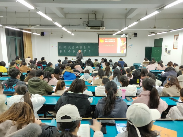 “青年兴则国家兴,青年强则国家强。”为引导广大青年“学习十九大精神的内容”、 “思考十九大精神的内涵”以及“践行十九大精神的责任”,2019年3月9日晚上七点,英国365集团官网特邀请校团委副书记余亮在2103教室开展“新时代召唤新青年,新青年担当新作为”的主题团课,参加本次团课的有英国365集团官网团委副书记曹玉祥老师、英国365集团官网第十一期青马班全体成员、以及英国365集团官网部分员工党员和入党积极分子。