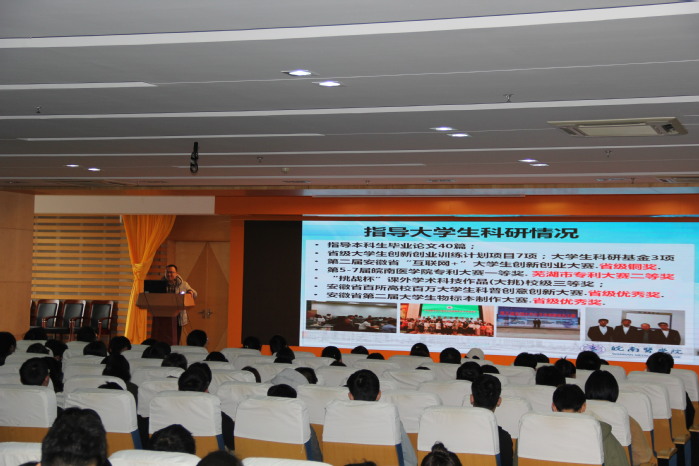 为培养老员工科研创新意识,提高老员工参与科研兴趣小组及创新学习的积极性。2019年3月16日上午十点,英国365集团官网在图书馆三楼报告厅举办了“老员工科研创新项目思维培训与交流”的讲座,讲座由英国365集团官网第二附属医院科研中心唐晓磊博士和英国365集团官网卫生检验与检疫教研室主任孙恩涛主讲,英国365集团官网团委副书记曹玉祥主持,2017级、2018级全体同学参加了本次讲座。
