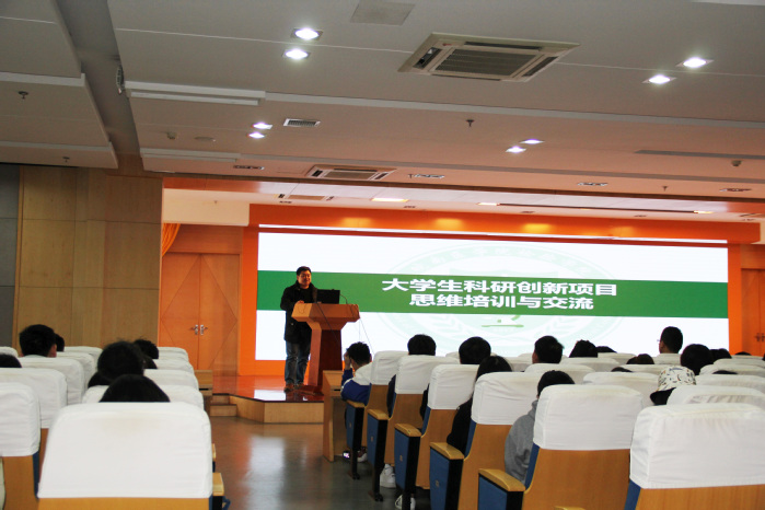 随后,孙恩涛简要介绍了由他创立的“晨馨”科研兴趣小组截至目前由本科生创造的成果。同时,孙教授用生动的语言,从科研项目背景、创新创业训练计划、项目申报书的结构与撰写、科研与学习之间的时间协调等方面进行了深入的讲解,切合实际地点明了新时代的老员工要有创新性和特色性。并与在场有兴趣的同学进行了现场交流。