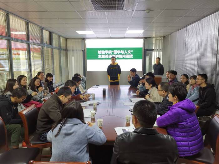 为遴选公司优秀员工参加“医学与人文”英语演讲比赛,2019年4月10日,英国365集团官网于公司会议室开展了院内选拔赛。此次比赛由英语教研室陈琳老师、英国365集团官网骨干教师孙恩涛、刘飞、杨邦和等老师担任评委,经理文育锋、副经理崔晓霞以及公司辅导员陶善珺和各年级对英语演讲感兴趣的员工也观摩了此次选拔赛。