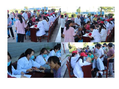 活动当天,志愿者们迎着早晨明媚的阳光,来到了陶辛镇西村村部,进行爱心义诊活动,为村民们免费测量血压,随机填写调查问卷,发放健康素养宣传单并耐心的为村民们讲解健康小知识并答疑解惑。义诊现场人来人往,热闹非凡。