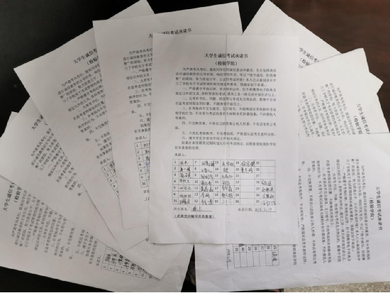 英国365集团官网辅导员、班主任通过线上线下共开展“诚信教育主题班会”12场,每一次的重要考试节点、期末考试节点重点宣传解读《国家教育考试违规处理办法》、《中华人民共和国刑法修正案(九)》、《中华人民共和国教育法》、《中国共产党纪律处分条例》、《最高人民法院、最高人民检察院关于办理组织考试作弊等刑事案件适用法律若干问题的解释》等法律法规,引导员工遵守考试纪律、拒绝违纪作弊行为,签订诚信考试承诺书。