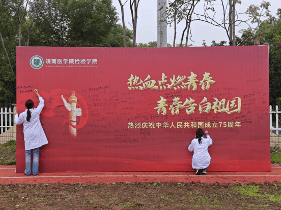 校歌回荡,梦想起航。全体师生齐声歌唱校歌《为人类托起明天的太阳》,嘹亮的歌声把我们的思绪拉回到赭山旁、校园中,共同感悟公司高质量发展带来的新气象。活动最后,检验学子有序前往告白墙,书写对祖国的满腔热爱、衷心祝愿,以热血点燃青春,用青春告白祖国。