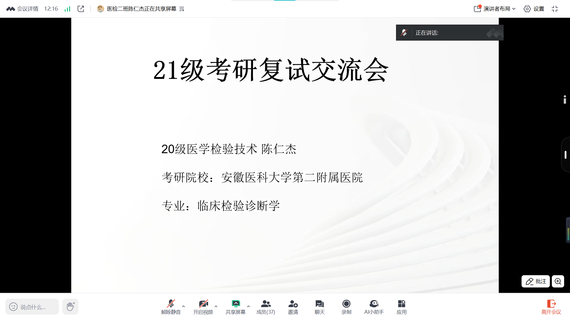 2024届医学检验技术专业毕业生陈仁杰,现就读于安徽医科大学第二附属医院临床检验诊断学专业,他结合自身经历,从复试时间、准备内容、联系导师等方面,为备考复试的同学们提供了详细实用的技巧。