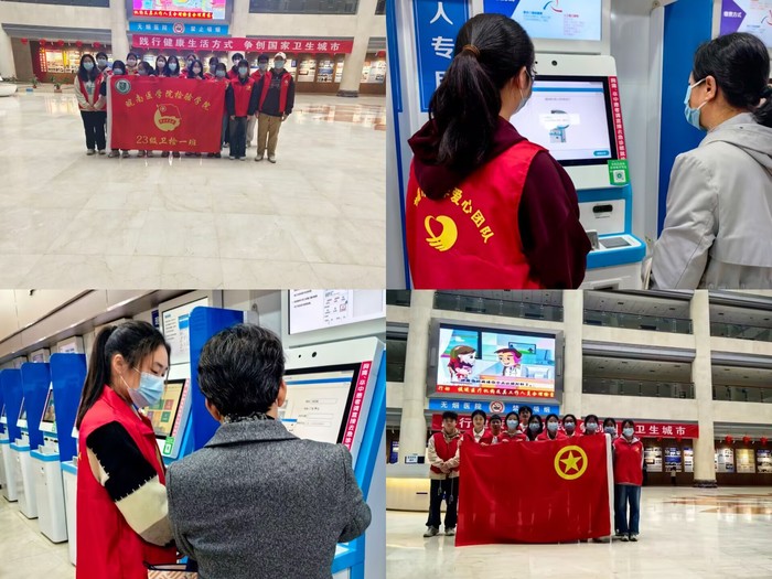 爱心献社会,真情暖人心。3月17日、24日,2023级卫生检验与检疫1班和2班团支部分别前往芜湖市第二人民医院参加了导医志愿活动。同学们协助医护人员对患者分流分诊,帮助患者使用机器快速挂号缴费,尽自己的微薄之力帮助患者更好地就医,减轻了医护人员的压力。活动中,不仅为患者提供了帮助,也让同学们从中学习到了沟通的重要性。