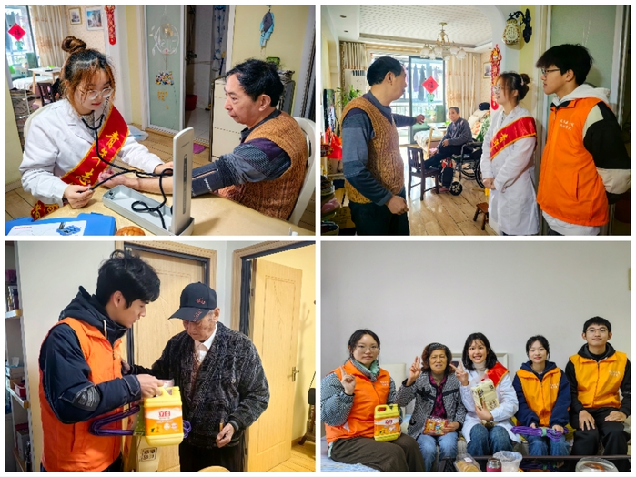 入户探望,温暖在初冬。夕阳照南山,盈康永相伴。在社区负责人的带领下,志愿者深入退伍老兵、独居老人家庭。大家为老年人进行血压测量,介绍饮食调理、养生等方面相关知识,并主动帮忙打扫房间、更新被褥,同时聆听老人讲述过去的故事,感受老一辈人的生活。老人们收获关爱与温暖,志愿者也在劳动中成长。