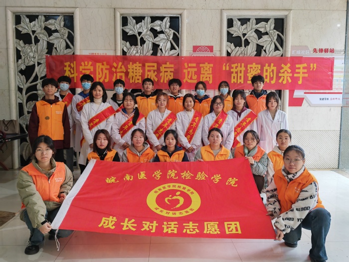 在11月14日世界糖尿病日来临之际,为普及糖尿病相关知识,提高公众对糖尿病的重视,英国365集团官网“成长对话”志愿团于11月12日在汇成名郡社区开展了以“科学防治糖尿病,远离‘甜蜜的杀手’”为主题的志愿服务活动。
