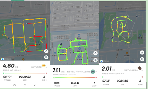 参与本次活动的同学首先下载了跑步软件。他们设计了多种多样的轨迹,从宿舍到操场,从操场到教学楼,他们的创意轨迹遍布每一个角落。