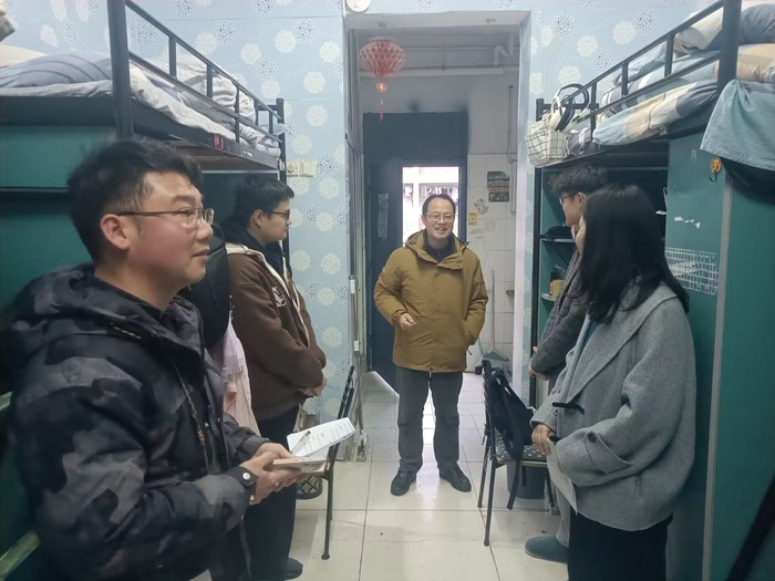 公司党政主要负责人崔晓霞、洪亮分别于2月26日和3月1日在辅导员的陪同下走进员工宿舍,与同学们面对面交流,详细了解大家近期的学习、生活、考试、就业等相关情况,并提醒同学们做好寝室的消毒、卫生工作,做好个人健康防护,养成良好的生活习惯。