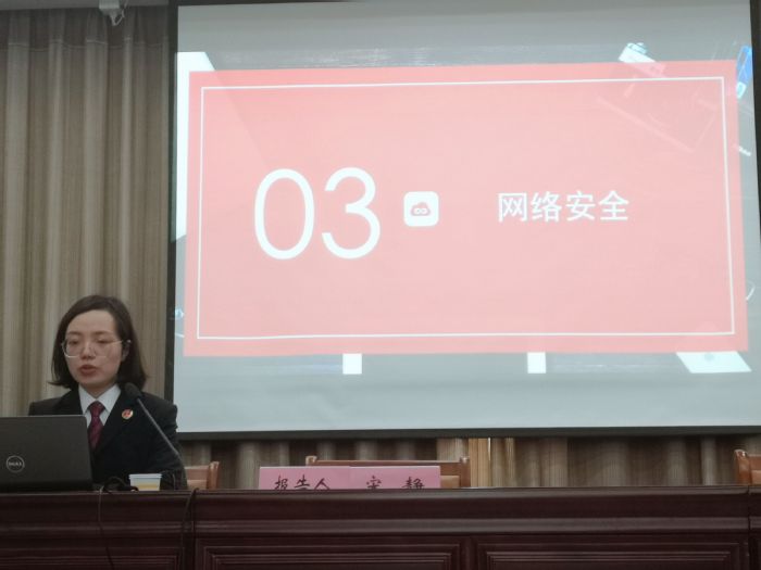 宋静围绕习近平总书记总体国家安全观提出的背景,以“维护国家安全,人人都是主角”为主题,细致讲解了什么是国家安全、我们应该做什么、什么是网络安全;随后结合近年来的典型案例,提醒同学们“居安思危,加危图安”。