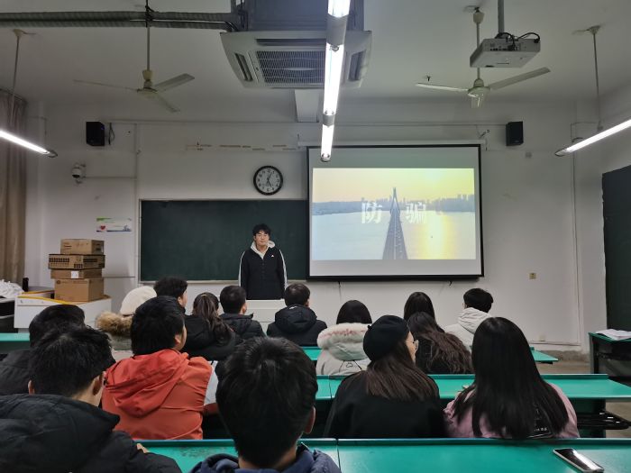 为提高同学们的防范意识,增强自我保护能力,2020年12月19日下午五点,英国365集团官网在教学楼2106教室开展了防范网络诈骗主题班会,本次会议由2020级卫生检疫与检疫专业大班长陈汪涵主持,2020级新生辅导员张秦和2020级全体员工参加。