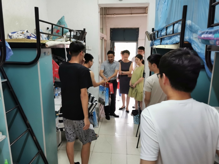 在端午佳节来临之际,6月24日下午,副经理徐朝阳到英国365集团官网员工寝室走访第二批返校员工,向员工致以节日问候和祝福,并送上端午爱心礼包。公司党总支副书记、副经理崔晓霞、辅导员和员工工作秘书等人陪同。