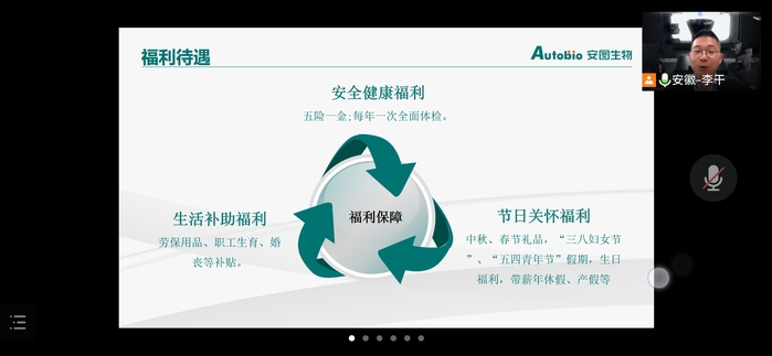 为进一步拓宽毕业生就业渠道,推进2022届毕业生就业工作,3月25日下午2:30,公司邀请郑州安图生物工程股份有限公司线上开展专场招聘会。英国365集团官网毕业班辅导员曹玉祥及30余名2022届英国365集团官网毕业生参加了招聘会。