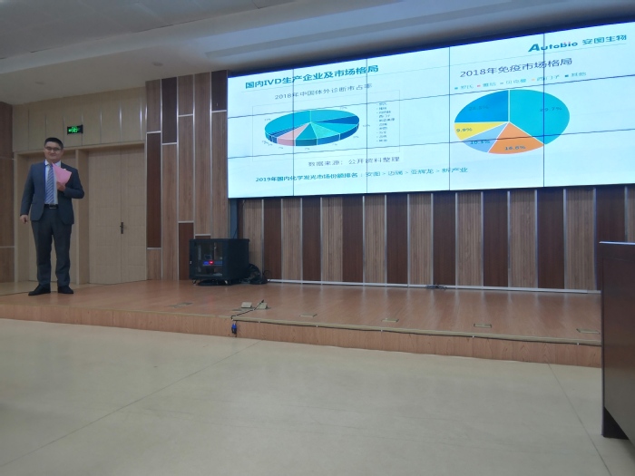 宣讲会上,安图生物客服区域经理刘杨以《体外诊断(IVD)行业发展前景与就业选择》为主题向同学们介绍了全球IVD行业发展现状与前景及IVD在中国的发展,并就关于我们、发展历程、人才管理体制、晋升体系及员工待遇等内容进行了详细介绍,展示了一个“关注品质、追求卓越、精良制造”的安图生物。通过与同学们进行现场互动的方式,让大家对体外诊断及检验专业就业选择有了更深入的了解。宣讲会结束后,同学们踊跃向该公司投递简历,随后,郑州安图生物工程股份有限公司对有就业意向的同学们进行了面试。