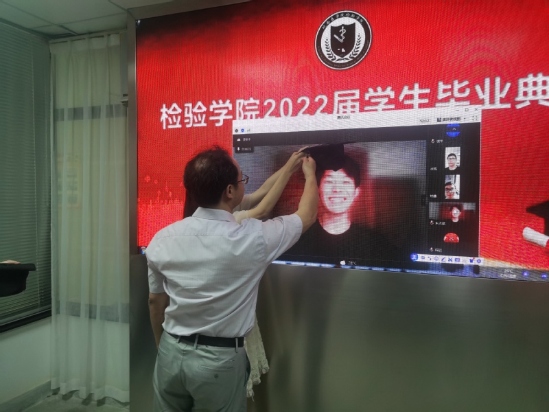 经理洪亮为毕业生进行线上拨穗