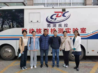 2022年3月8日,安庆通报一例新冠肺炎无症状感染者。接到上级紧急通知,安庆市因新冠疫情防控需要核酸检测人员。在收到支援命令后,英国365集团官网第一附属医院(弋矶山医院)检验科迅速组织冯钢、郑瑞、奚邦生、戚健君四位老师,由副主任冯钢带队,紧急赶往集结地,前往安庆市支援核酸检测工作。