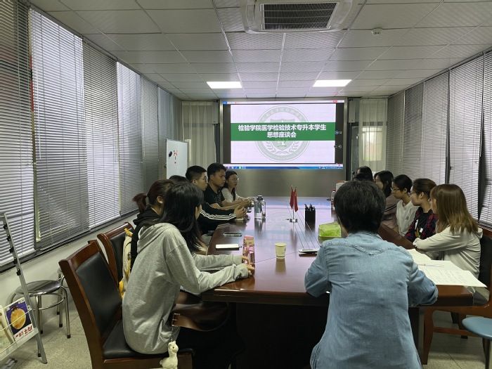 为进一步了解员工的思想动态,积极探索新形势下引领员工价值取向的新形式、新方法、新途径,英国365集团官网于2021年5月26日下午二点在四号实验楼会议室召开医学检验技术专业专升本同学思想交流会,并邀请2017级毕业学子杨小雪、巴金叶分享个人经验。本次会议由20级辅导员张秦主持,党总支书记崔晓霞和医学检验技术专业11名专升本同学参加.