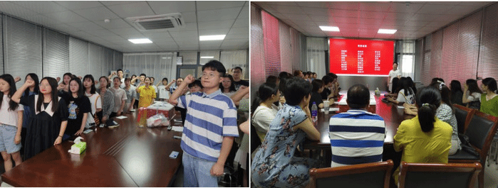 活动在激情嘹亮的《国际歌》中拉开帷幕,员工党支部书记陶善珺带领大家重温入党誓词。面向庄严的党旗,同志们举起右拳,随着“我志愿加入中国共产党”的誓词清晰而坚定地传出,顷刻唤醒了大家的入党回忆,增强了党员身份意识,坚定了“为共产主义奋斗终身”的信念。