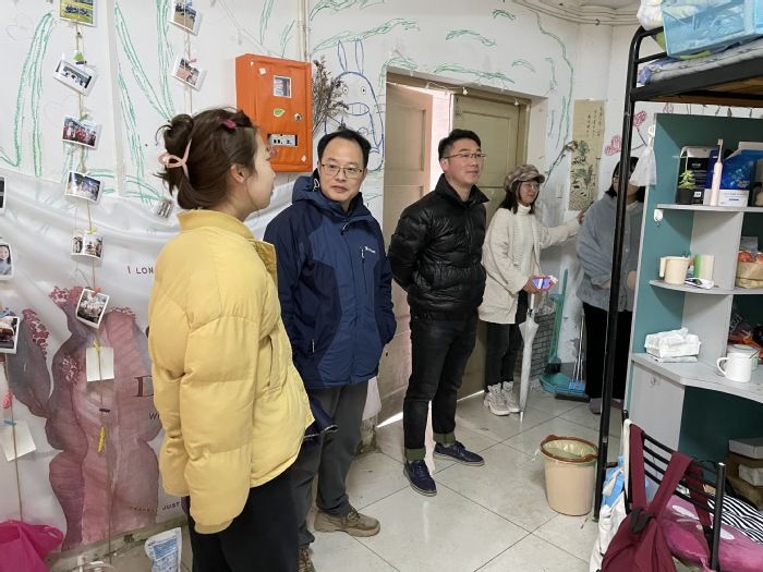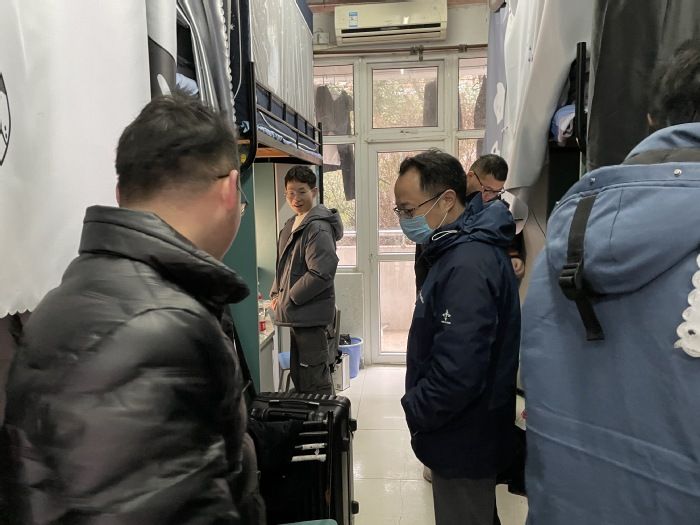 在走访在校三个年级的宿舍中,三位老师检查了宿舍安全卫生、排查违规电器。对同学们积极营造安全卫生、文明向上的寝室氛围给予肯定。洪亮亲切地与员工们交谈,了解大家在寒假期间的思想、学习、生活等各方面情况,叮嘱大家在校期间,如果遇到困难要及时与辅导员沟通。