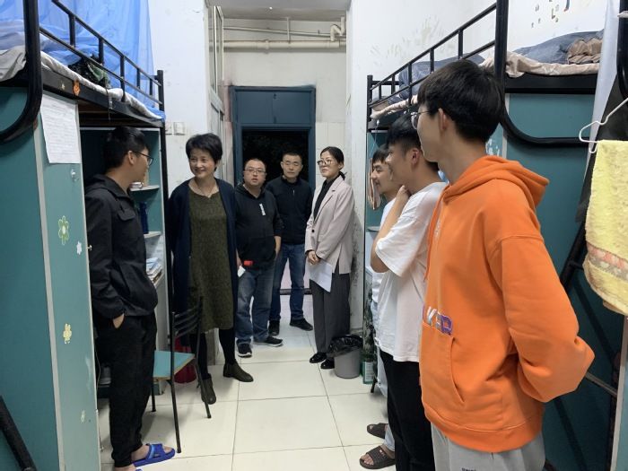 10月14日晚,崔晓霞和20级辅导员、班主任和员工工作秘书,走访新生宿舍了解员工生活学习情况。