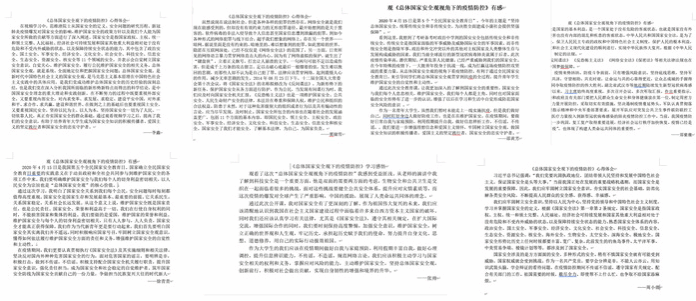 为深入学习贯彻习近平总书记提出的总体国家安全观,加强《国家安全法》等法律的宣传普及,进一步提升全民国家安全意识,公司党总支员工党支部开展全民国家安全教育日”线上主题党日活动。全体党员学习了相关法律知识,并撰写学习感悟。会后,他们表示,在今后,自觉遵守法律法规,时刻保护国家安全,坚决抵制破坏国家安全的行为。在感悟中他们写到“作为一名共产党员,要学会分辨是非,不能人云亦云,要用知识武装头脑,学会辩证的看待问题,在疫情防控期间不传谣不信谣,遵守国家有关规定,配合有关部门的工作,做好一名党员应有的职责。”