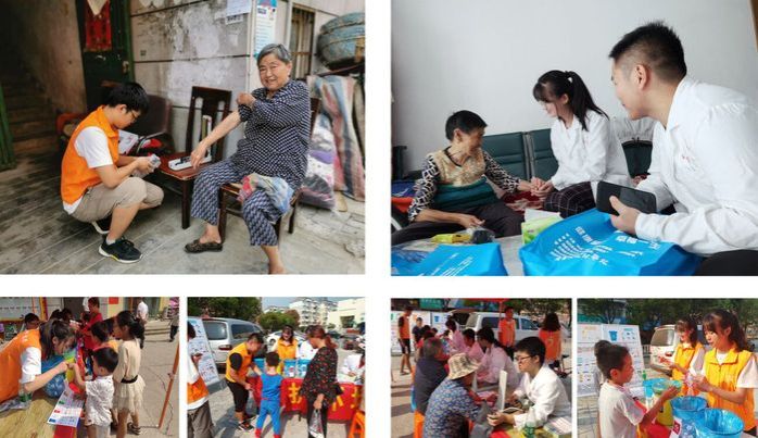 为大力弘扬敬老、爱老、护老的传统美德。同学们在社区干部的带领下,走入老人家中,为老人义务测量血压、讲解高血压等疾病预防和治疗的相关知识,并送上环保袋、毛巾、硫磺皂等生活日用品。随后,员工们以饱满的热情投入户外爱心义诊的活动中,以和善友好的态度为居民提供便民医疗服务,传递爱与热情。