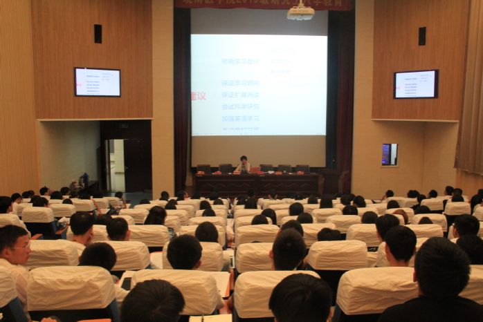 崔晓霞以“老员工”为主题,为2019级新生作报告,她从老员工活、学习和第二课堂三个方面,娓娓道来,引导同学们应该怎样精彩又有意义地度过老员工活。随后,她从“大学是否真的很轻松”导入,重点阐述大学是自由的,但需要我么更加自律,“唯有自律,我们的未来才会更自由,唯有自律,我们的未来才会更适应”。最后,崔晓霞给2019级新生提出几点建议:明确学习目标,保证学习时间;人际关系和谐,找到事业伙伴;参加一个社团,培养一个爱好;拓展课外阅读,尝试科学研究;养成良好习惯,促进身心健康。