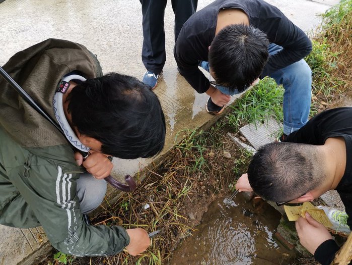 为坚决打赢脱贫攻坚战,全面完成整体脱贫目标任务,泾县在农业方面制定了明确的目标任务和具体措施,但从事农业生产的群众还深受血吸虫病的危害。作为血吸虫的唯一中间宿主,控制和消灭钉螺是防治血吸虫病的有效措施之一。泾县血防专家汤国新首先向队员们介绍了泾县血吸虫疫情与防治工作的历史和现状,并针对目前常用的灭螺药物氯硝柳胺存在污染环境、毒害非目标生物和动物的问题,介绍了通过覆盖黑色塑料地膜来杀灭钉螺的原理及效果。最后,汤老师带领队员实地考察了覆盖有黑色地膜的田地,并现场开展查螺,将采集的钉螺进行压片镜检,未发现感染性钉螺。同学们切身体会到地方血防站工作人员查螺工作的艰辛、灭螺的智慧以及对环境保护的重视。在查螺的过程中检验学子也将课本知识运用到实际中来,提高了实验室的操作能力,收获颇丰。