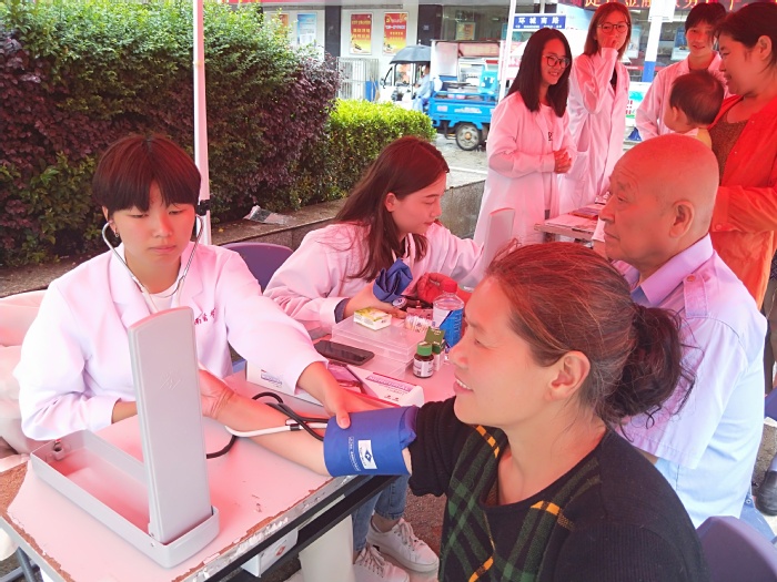 为提倡全民健康,弘扬社会志愿服务精神,推动居民健康促进工作的开展,员工党支部书记陶善珺和义诊小分队的同学们前往泾县皖南第一街的街头,开展义诊活动。在义诊过程中,志愿者运用自己所学的专业知识回馈社会,为居民们测量了血压以及血糖,宣讲相关保健、防暑知识,分发日常药品。义诊场面热烈有序,大家不辞辛苦顶着大雨认真工作的态度获得了广大居民的高度好评。
