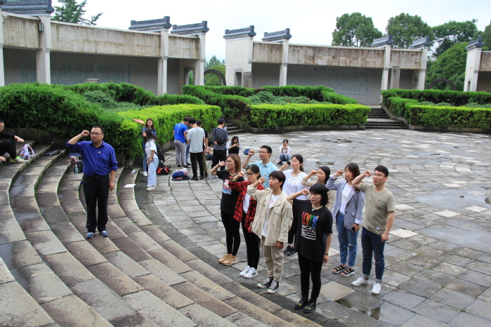 为铭记革命精神,扬帆红色之旅。下午,志愿团一行前往皖南事变烈士陵园追忆革命先辈不屈不挠的优良品格。1941年,新四军战士曾在这里浴血奋战7天7夜,抗击国民党军队。如今,在这块土地上,虽已告别了当日的硝烟弥漫,但革命精神在这里万古流芳。陵园中一面镶有邓小平书写的“皖南事变死难烈士永垂不朽”题词的巨大石碑映入眼帘,强烈地震撼了在场所有人的心灵。在庄重的哀悼后,教职工党员、员工党员以及预备党员面对石碑重温入党誓词,并进行“革命精神永在”主题讨论,表达了自己对革命先辈的敬畏之情。深切感受到“信仰”的力量和伟大,是党在极其恶劣的环境下带领中国人民创下了光辉业绩,在美好幸福的今天,我们理当更加努力,为实现中国梦贡献自己的青春力量。