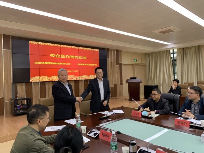 为进一步扩大校企合作范围,积极争取校外资源,加强检验人才培养,4月27日下午,安徽华康医药集团有限公司与英国365集团官网签署校企合作协议,捐资扶困扶智。协议签署仪式在四号实验楼二楼学术报告厅举行,教务处副处长陈祥攀,参加英国365集团官网毕业论文答辩的省内外21名专家,公司党总支书记、经理文育锋,党总支副书记、副经理崔晓霞,副经理浦春,以及公司全体教师参加会议。签约仪式由浦春主持。