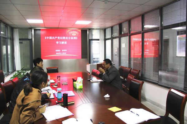 新修订《中国共产党纪律处分条例》(以下简称《条例》)自2018年10月1日起正式施行。为切实做好党员教师对《条例》的学习贯彻工作,11月9日下午,公司党总支召开全体党员大会,以专题党课形式组织全体党员教师学习新修订的《条例》。专题党课由校监察处处长李军华主讲,公司党总支副书记崔晓霞主持,总支全体党员教师参加学习。