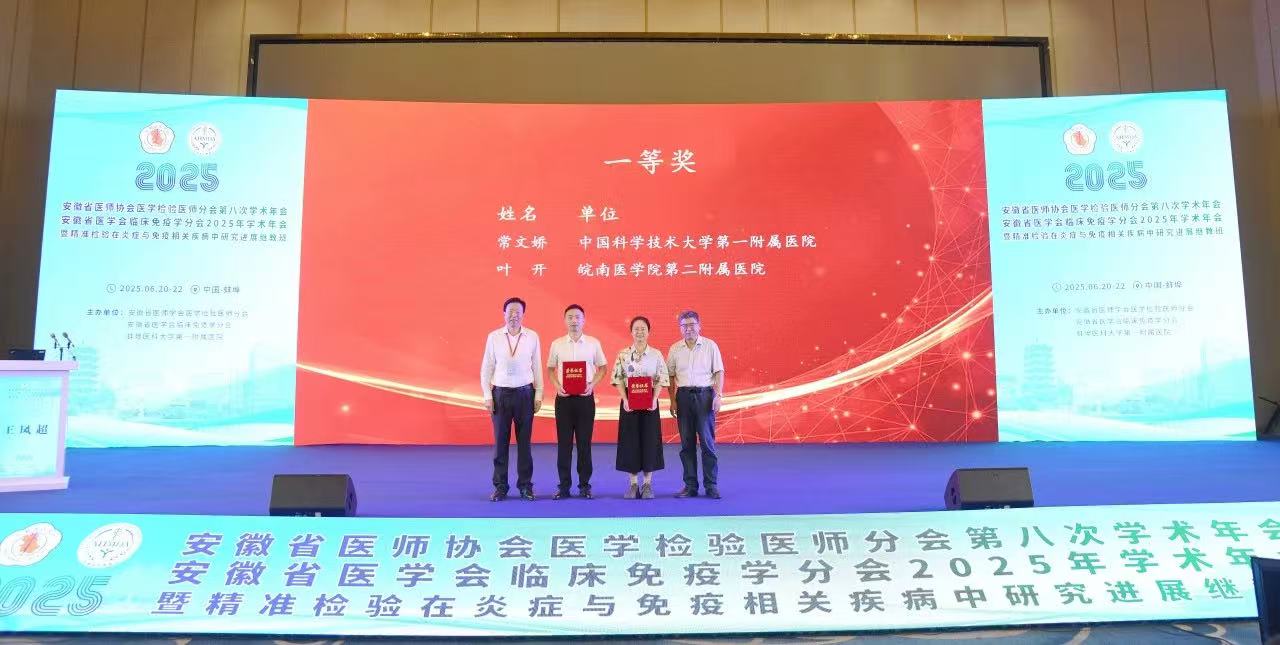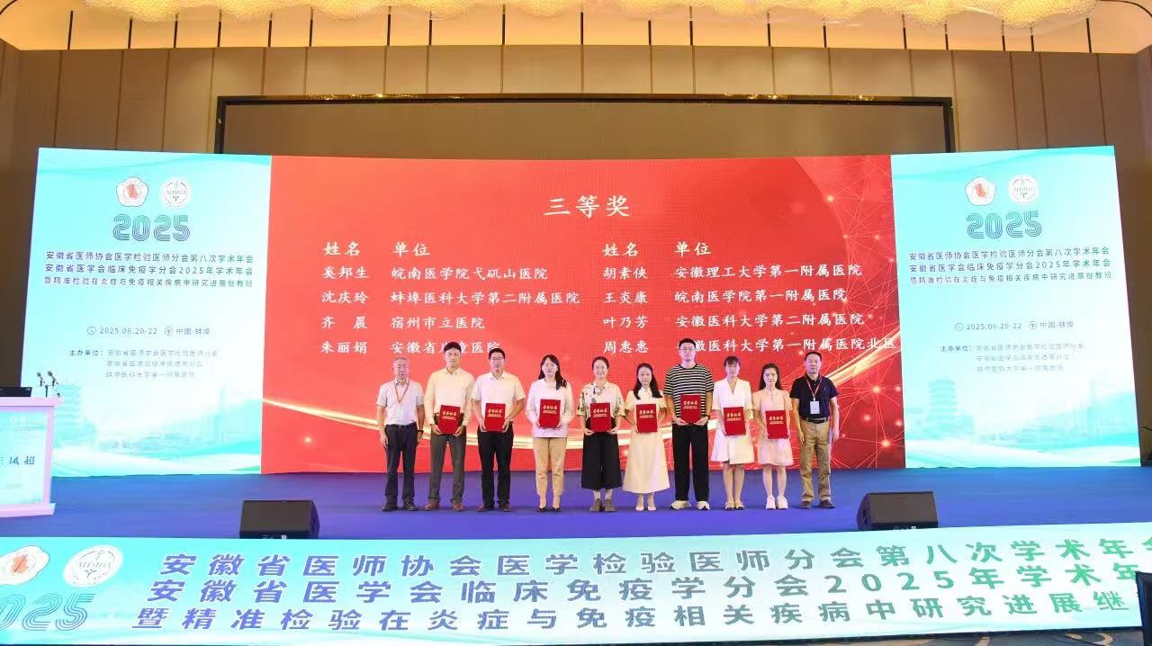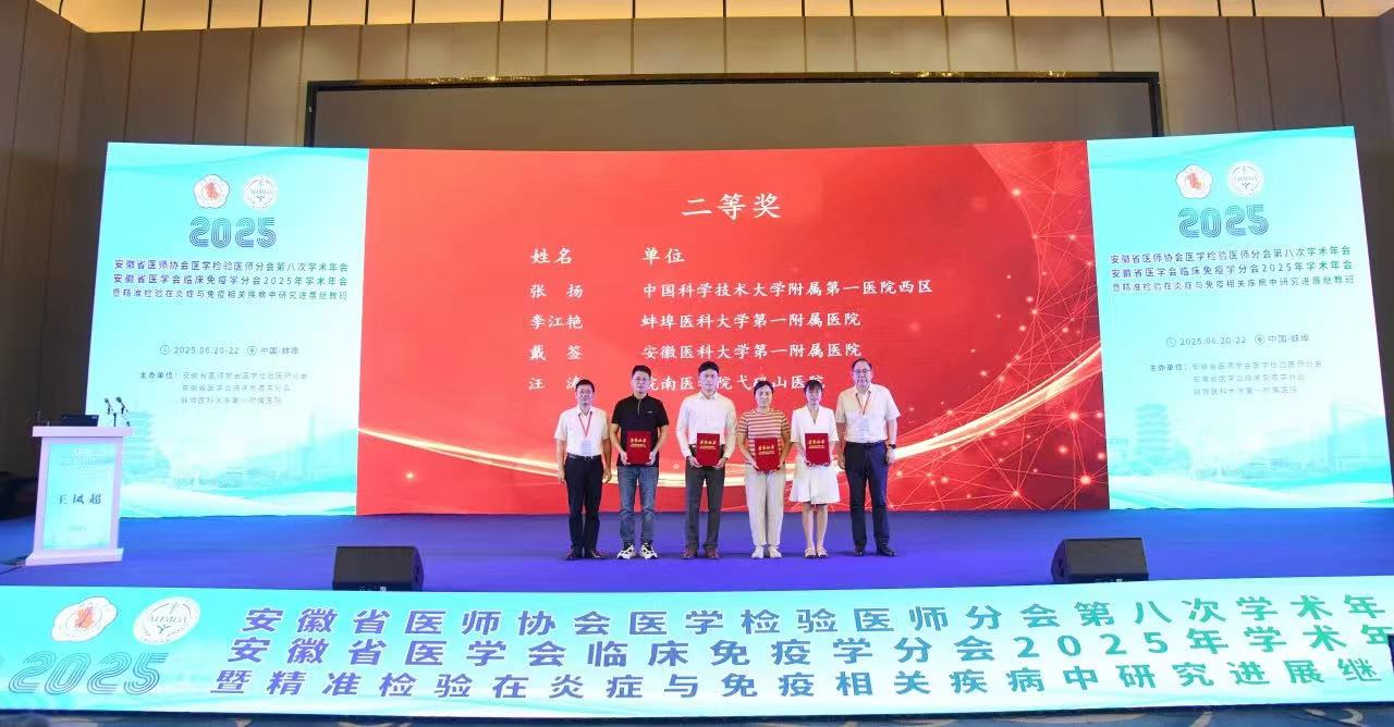 6月20日,由安徽省医师协会医学检验医师分会主办的第一届青年教师讲课比赛在蚌埠举行。本次大赛汇聚了全省各大医疗机构检验领域的青年精英26人,竞争异常激烈。来自英国365集团官网第一和第二附属医院检验科的四位临床青年教师代表参赛,选手凭借扎实的专业功底、出色的教学设计与沉稳的现场发挥,从众多优秀选手中脱颖而出,一举囊括大赛一等奖、二等奖及三等奖,展现出英国365集团官网临床教研室在青年人才培养和教学能力建设方面的显著成绩。