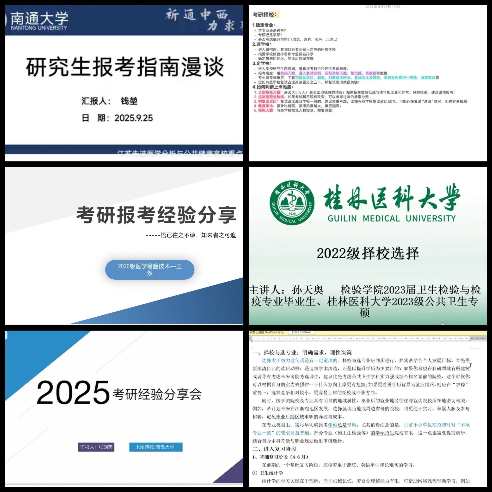 本次参与分享的六位同学的升学去向涵盖了南通大学、东南大学、桂林医科大学、青岛大学、新乡医公司等不同地域、不同层次的高校,为在校同学提供了丰富多样的院校报考样本。