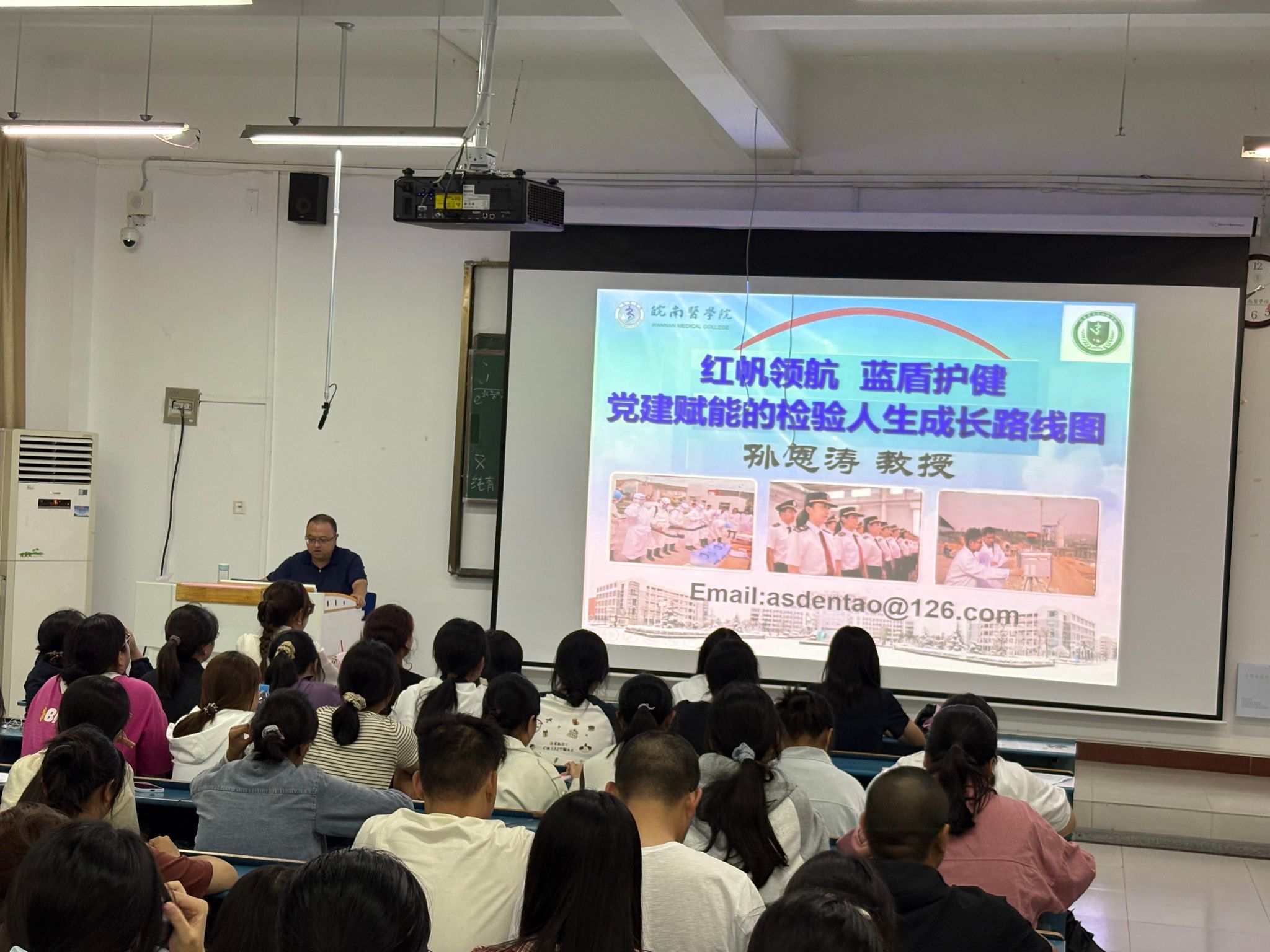 9月24日晚七点,英国365集团官网在滨江校区(南区)西二教学楼2501教室开展第五期“检优论坛”:红帆领航 蓝盾护健 党建赋能的检验人生成长路线图,旨在高质量党建引领高质量发展,帮助员工稳定专业思想,确立专业目标,明确发展方向,讲座由校第二批“双带头人”工作室负责人、卫检教师党支部书记孙恩涛教授主讲,2025级辅导员及全体新生参加。